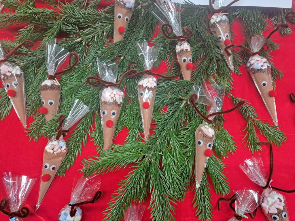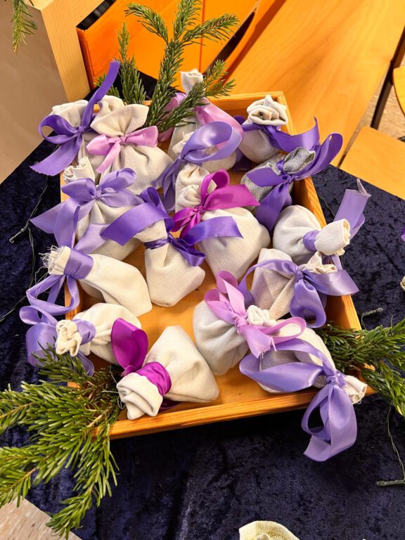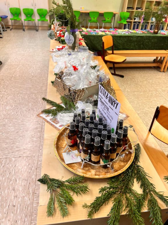 Überall gab es Schönes und Nützliches zu entdecken: frisch gebackene Plätzchen, leckeren „Rentier-Kakao“ für zu Hause, duftende Lavendelsäckchen, stimmungsvolle Karten, Weihnachtsbaumschmuck, selbst gemischte Raumsprays sowie Dekorationen aus Naturmaterialien wie Tannenzapfen oder Baumscheiben. Der Duft von warmen Waffeln, Punsch und Kakao lag in der Luft und machte den Nachmittag noch gemütlicher.