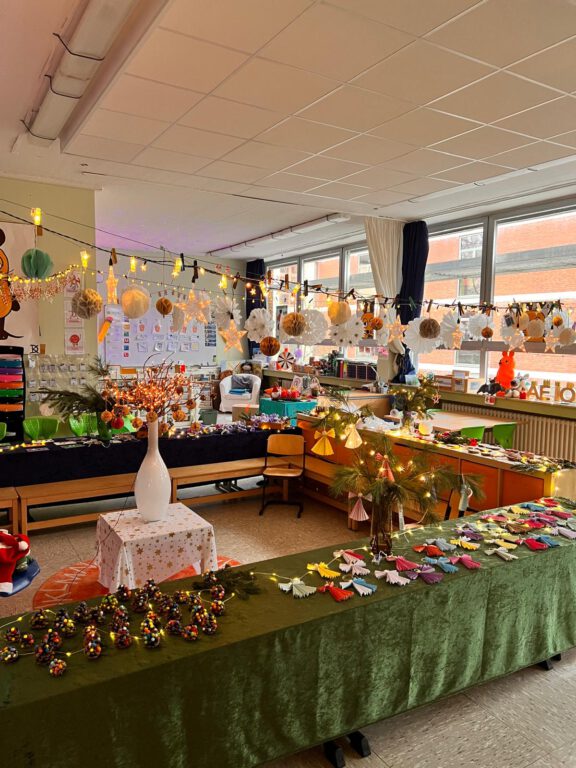 In den Tagen vor unserem ersten Adventsbasar am Mohnweg herrschte an der Schule ein fleißiges Treiben: Während der Advents-Projekttage wurde in allen Klassen fleißig gebastelt, geklebt, gemalt und gebacken. Die Schülerinnen und Schüler tauchten mit großer Begeisterung in die vorweihnachtliche Stimmung ein und stellten eine Vielzahl liebevoll gefertigter Kleinigkeiten her.