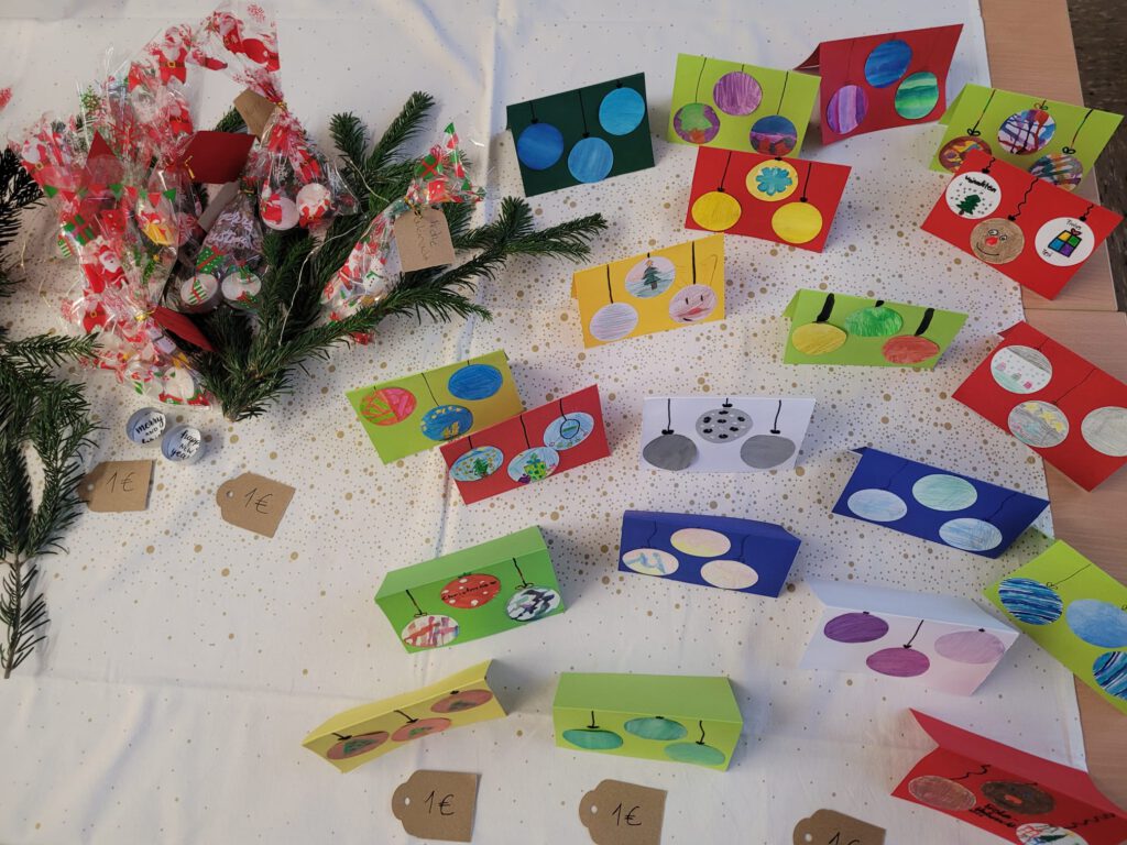 Auch die OGS war ebenfalls tatkräftig beteiligt und bereicherte den Adventsbasar mit viel Engagement und vielen Ideen: Schon seit Monaten hatten die Kinder dort in ihren AGs mit viel Geduld und Kreativität an den unterschiedlichsten Projekten gearbeitet. Mit Unterstützung der OGS-Mitarbeitenden wurden kunstvolle Diamond-Painting-Karten gestaltet, kleine Figuren und dekorative Anhänger aus Gips gegossen, winterliche Deko gebastelt und viele weitere liebevoll hergestellte Geschenkideen vorbereitet. Dadurch entstanden zahlreiche kreative und mit viel Hingabe gefertigte Produkte.