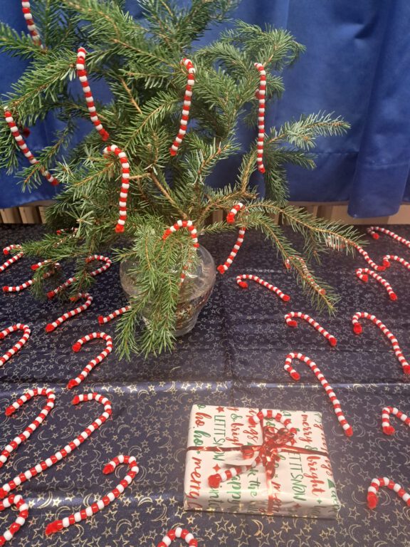 Für einen besonderen musikalischen Höhepunkt sorgte der Auftritt unseres Winterchores. Mit bekannten Advents- und Winterliedern erfüllten die Kinder den Eingangsflur neben dem Weihnachtsbaum mit warmen Klängen und verbreiteten eine feierliche Stimmung. Viele Besucherinnen und Besucher blieben stehen und lauschten den musikalischen Beiträgen -ein Moment, der den Basar noch stimmungsvoller machte.