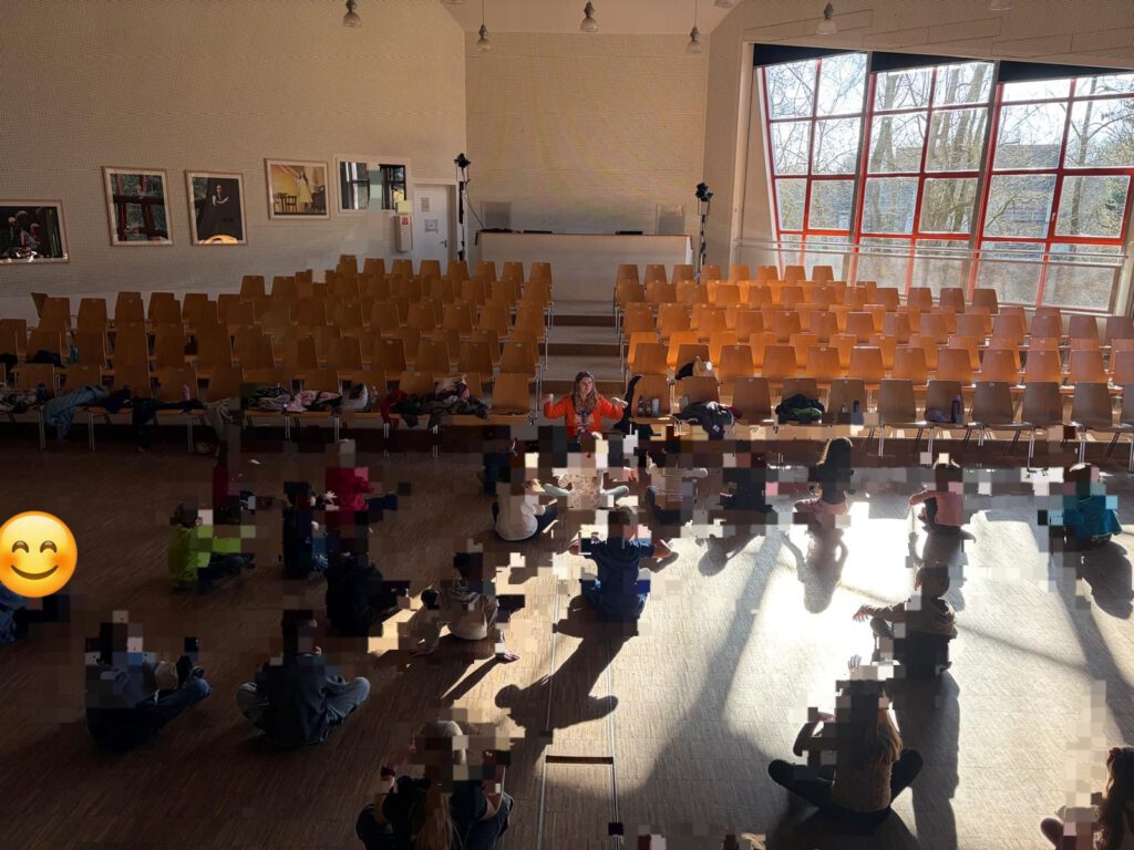 Der Höhepunkt der Woche war die große Abschlussaufführung in der Aula. Vor zahlreichen Zuschauerinnen und Zuschauern präsentierten die Klassen ihre einstudierten Tänze. Die Aula war gut gefüllt und die Stimmung begeistert. Auf der Bühne konnten die Kinder zeigen, was sie in wenigen Tagen gelernt hatten. Besonders beeindruckend war zu sehen, wie sicher die Kinder ihre Tänze präsentierten und, wie selbstständig sie auf der Bühne standen. Konzentriert, stolz und mit großer Freude tanzten sie ihre Choreografien und zeigten, was sie gemeinsam erarbeitet hatten. Mit viel Energie, Mut und sichtbarer Freude am Tanzen ließen sie ihre Choreografien lebendig werden und ernteten großen Applaus.